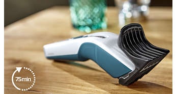Bateria puternica NiMH a aparatului ofera pana la 75 de minute de utilizare fara fir dupa 8 ore de incarcare. Iti ofera putere si libertate maxime. |
